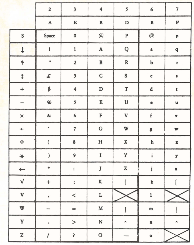 I caratteri alfanumerici vengono inseriti nel programma grazie ad una tabella di conversione, presente nel manuale della P603 e qui riportata: